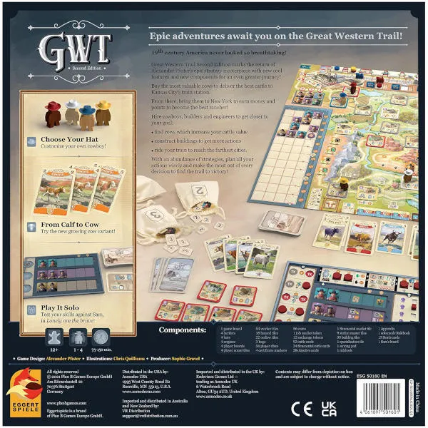If you cleverly manage your herd and navigate the opportunities and pitfalls of the Great Western Trail, you surely will gain the most victory points and win the game.