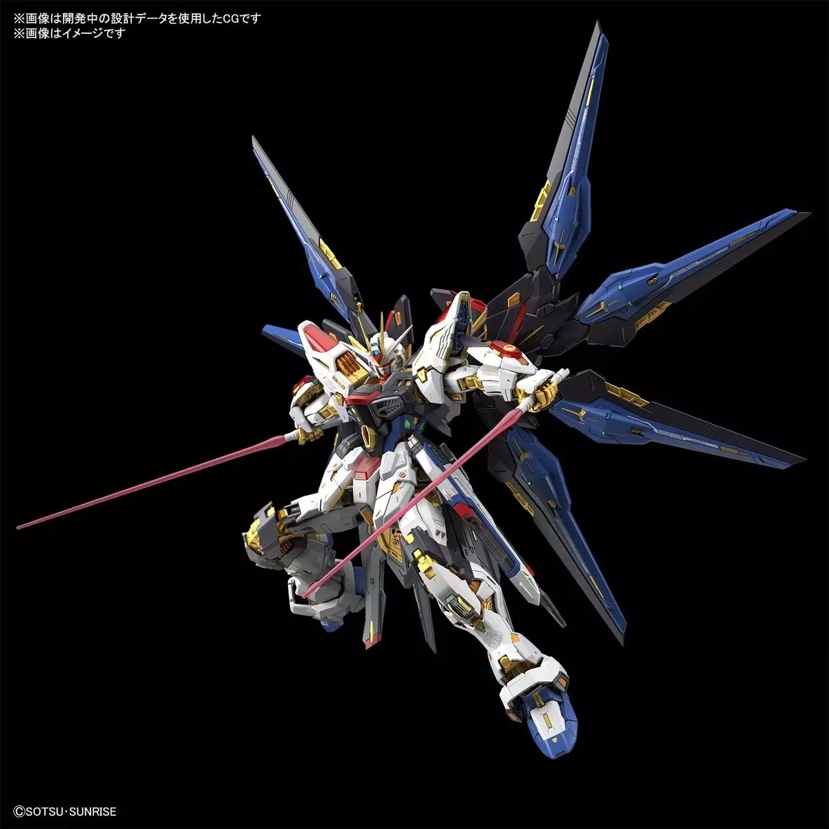 MGEX, the high-end brand renowned for its extreme expression in bringing MS Gundam to life, expands its line with the new Strike Freedom Gundam. The theme of this kit is the highest "metallic expression" in Gunpla history! Three types of special processing, two types of metallic molding, and etching stickers are used in a total of six patterns to express the metallic feel of the internal frame. Gaps in the armor pieces and use of red clear parts also help to emphasize the internal frame. Movable and equipped with a wide variety of optional weapons, this kit is simply a must-have for any fan and collector.