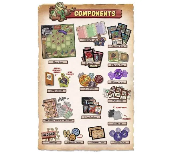 1. Town Phase - Players will take turns running Shops, working in the Guildhalls, and crafting artifacts. When the round ends after one player calls for it, the Heroes leave town for their next Dungeon Crawl.