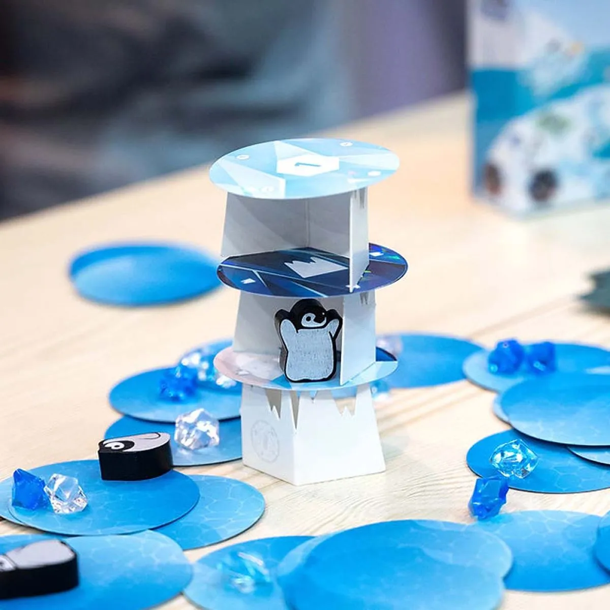 Uno meets Jenga in this card-based stacking game. Play cards and force your opponents to take actions including adding icebergs, ice crystals, and penguins to the tower. Use up all the cards in your hand, while keeping to tower standing, to win!