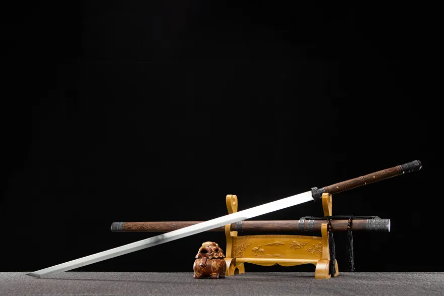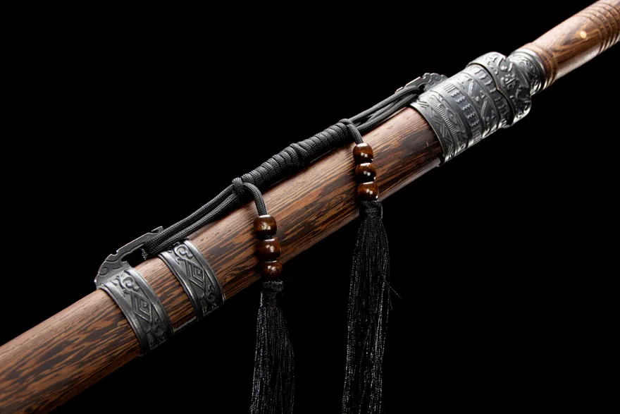 The Huali Wood Two-Handed Manganese Steel Tang Dynasty Sword is a finely crafted sword that combines traditional craftsmanship with modern materials for a stunning and durable piece.
