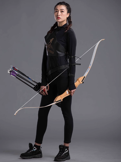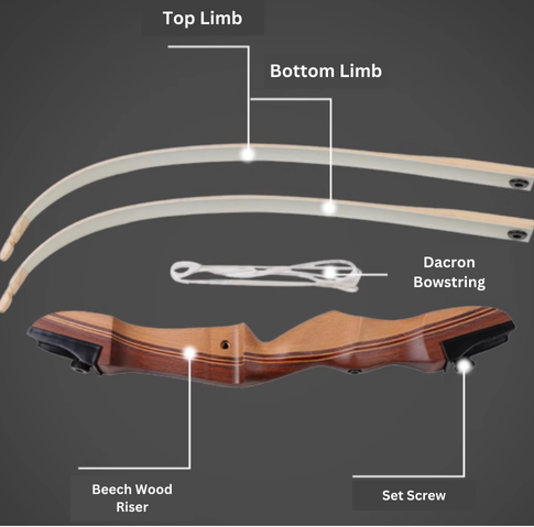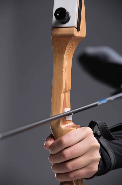 Elevate your archery experience with the Jinghong Recurve Bow Beginner Package. This elegantly crafted recurve bow features a beech wood riser with a smooth texture and decorative grain, adding a touch of sophistication to your archery gear.
