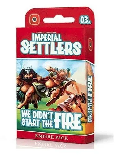 Imperial Settlers: We Didn't Start The Fire is the third Empire Pack for the Imperial Settlers engine-building card game. Join your favorite factions, best your opponents, and expand your empire! The expansion includes fifty new cards, increasing replayability of the base game, as well as borders that are placed between each pair of players