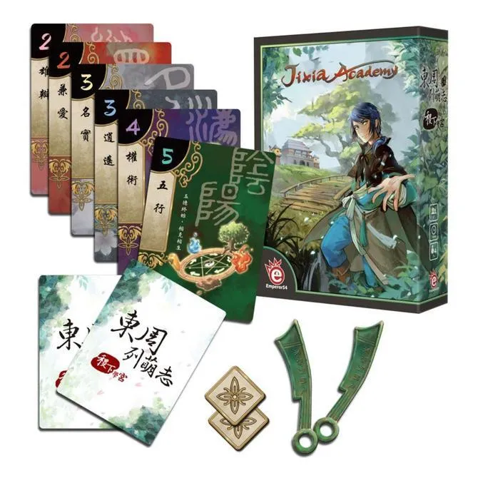 The award-winning and critically acclaimed Hanamikoji is back with the same beloved mechanics but brand-new art in Jixia Academy! Win the favor of the scholars by studying their theory and outwitting your opponent in this unique dueling card game! Jixia, just like Hanamikoji, is the perfect travel, filler, or date-night game!
