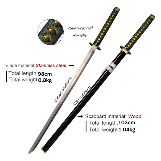 Made from stainless steel, the blade is easy to clean and resistant to scratches and rust. Blunted blade assures that the sword is safe and easy to handle, measuring an impressive 103cm in length.