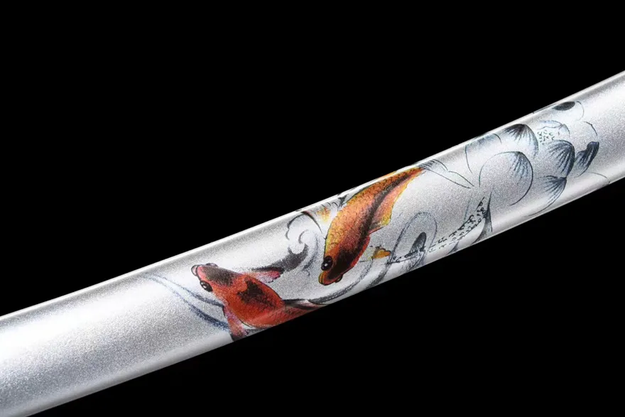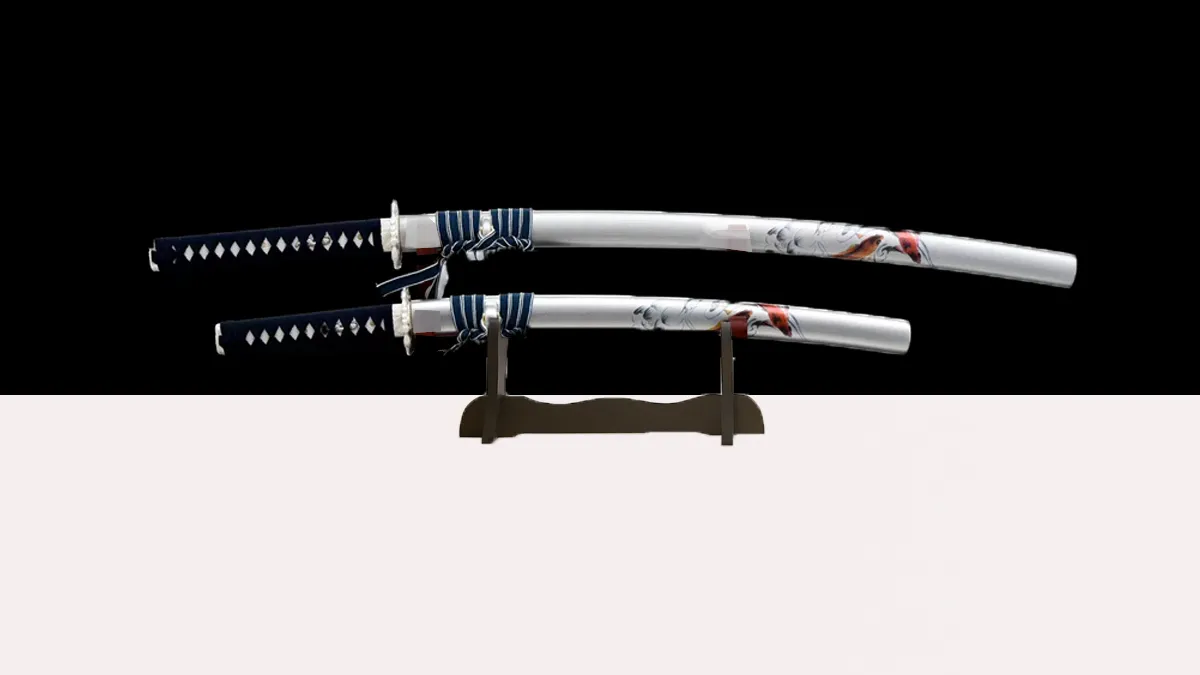 - Protected by a white wooden sheath with koi painted to protect the blade.