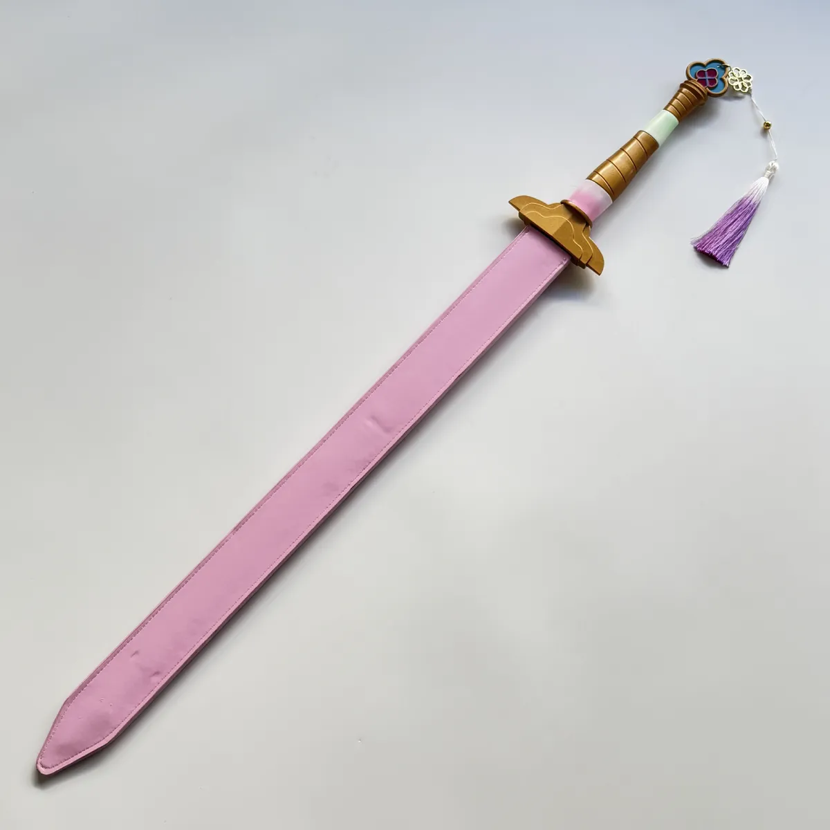 The handle includes gold and gradient-tone fittings, paired with a pink scabbard for a striking, collectible finish.