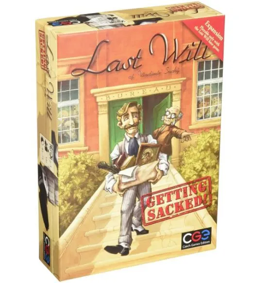 With this expansion added to Last Will, each player begins the game with a job card that provides him with a regular income each turn and details a number of things the player must do in order to get fired. Unlike in real life, it can be difficult to persuade your employer to give you the old heave-ho. When you miss work, he's inclined to be charitable because he liked your uncle and he's sorry for your loss. To make him angry, you need to get caught living it up when you should be working. He won't sack you straight away, but he will at least dock your salary.