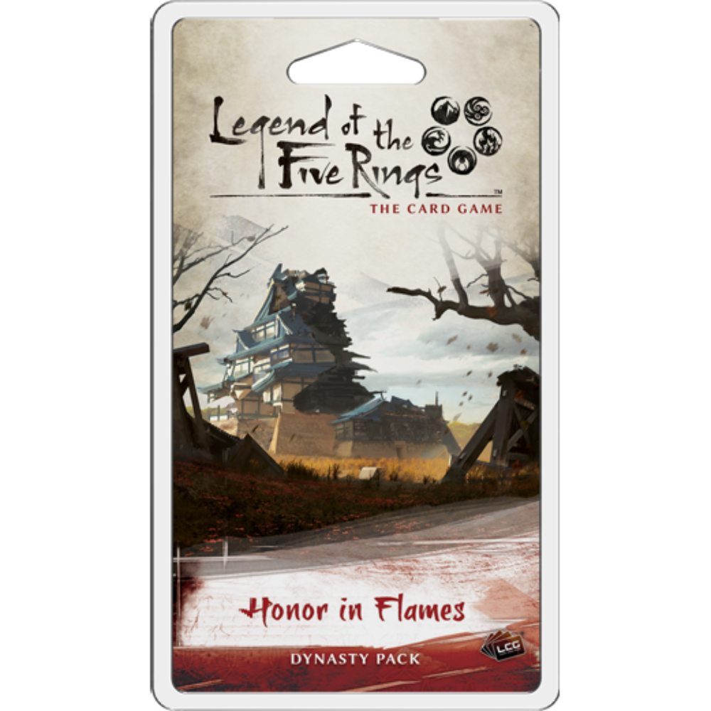 Like other Dynasty Packs of the Temptations cycle, the 60 cards included within the Honor in Flames expansion for Legend of the Five Rings: The Card Game provide new dynasty deck and conflict deck options for each of the seven Great Clans, as well as three new provinces. The honor levels of each clan become more important than ever before, and the new dire keyword lets your characters unlock potent new abilities as they near the end of their time in the spotlight. With the expanding Temptations cycle, what dangers will you face—and what choices will you make?
