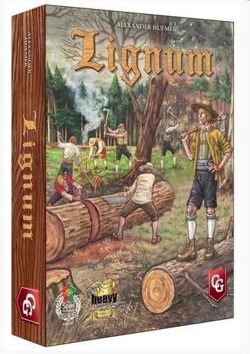 Lignum is a strategic optimization game that portrays the logging industry in the 19th century. Each round, players travel to the nearby forest, picking up tools and hiring workers along the way. After felling timber, players must decide how to transport their wood to their sawmills and if the wood should be processed or sold immediately, all the while optimizing their entire processing chain. The second edition of Lignum also includes the "Joinery & Buildings" expansion.
