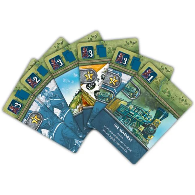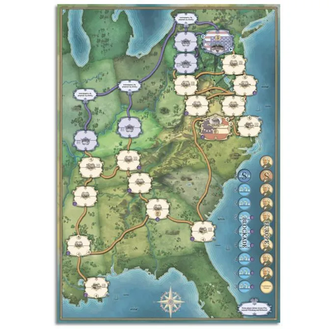 Game play uses point-to-point movement and area control, hidden army strengths, and decks of cards providing the command choices and luck; there are no dice. The Union and Confederate players each have their own card decks, reflecting the relative strengths and weaknesses of both sides. The Union player must do all the running to win the game by the time they have cycled through the Union card deck for the third time, having accumulated the required amount of victory points by capturing Confederate controlled areas, as well as squeezing the Confederate player with a naval blockade. The Confederate player must hold on and thwart the North's victory ambitions to win!