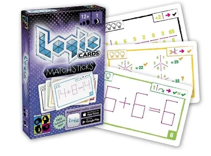 Logic Cards Matchsticks includes 53 cards with different types of matchsticks challenges in 5 difficulty levels.