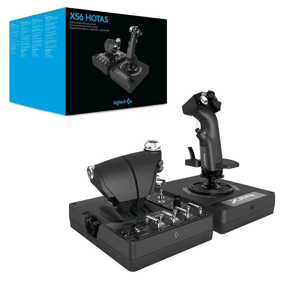 Logitech G X56 H.O.T.A.S. RGB Throttle & Stick Simulation Controller 6 DOF Pitch Roll Yaw Back Forward Up Down Left Right 4 Springs 189+ Programable