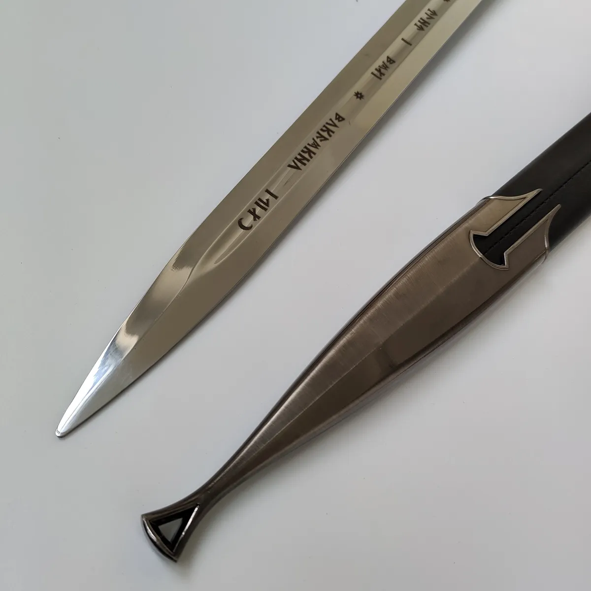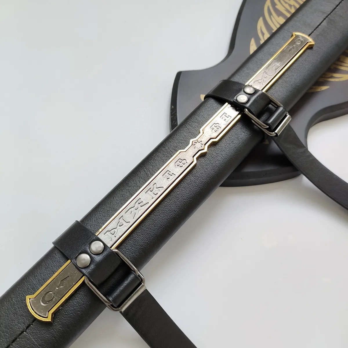 The sword comes with a beautifully designed wall plaque, perfect for mounting and displaying the sword as a centerpiece in any collection. With blunt edges for safety, this replica can be safely handled or displayed without risk. The intricate craftsmanship captures the elegance of Narsil, reforged into Anduril, the Flame of the West. Complete with a finely detailed scabbard, this sword is a must-have for any Lord of the Rings enthusiast, bringing the epic story of Middle-earth into your home.