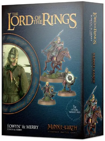 This multipart plastic kit contains the components necessary to assemble Éowyn and Merry, both on foot and mounted on horseback. When mounted, you have the option to remove Merry, leaving just Éowyn. On foot, Éowyn carries a sword and shield, but also bears a throwing spear when mounted. Merry is clothed in the uniform of a Squire of Rohan and also bears a sword and shield. Both versions of Éowyn can be assembled with either a head that features her flowing golden hair, or with a full helm in her guise as Dernhelm.