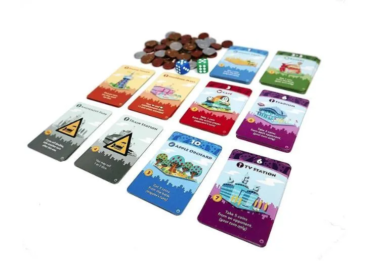 Machi Koro 5th Anniversary Expansions continues the celebration of the evergreen title’s fifth birthday! This expansion contains new reprints of the classic Harbor and Millionaire’s Row expansions, available together for the first time! Compatible with the recently released Machi Koro 5th Anniversary Edition, Machi Koro 5th Anniversary Expansions features the same larger card size than previous editions as well as brand-new plastic coins to add to the plastic coins of the base game. Each expansion adds new layers, like Fishing Boats, an airport, and components to add a fifth player! Machi Koro 5th Anniversary Expansions components Contents: Rule book, 6 Starting cards, 3 Major Establishments, and the Harbor and Millionaire’s Row contents. Harbor: 15 Starting cards 58 Supply cards 12 Coins Millionaire’s Row: 60 Establishments 20 Major establishments 15 Renovation tokens