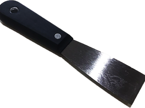A metal scraper, perfect for removing prints from the heated bed without damage to the print or tape.