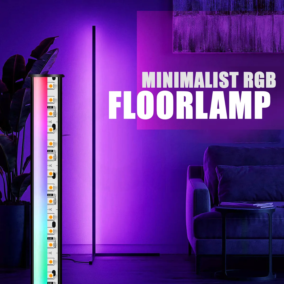 Minimalist floor lamp RGB+Alexa led corner standing lamp led floor lamp -White (Iron Frame)