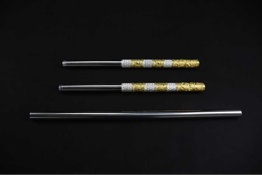 This sturdy and well-balanced staff is crafted from precision steel, ensuring both strength and longevity. The alloy fittings add a touch of elegance while enhancing the durability of the staff. Whether for martial arts practice or as a collector's item, the Golden Cudgel stands out as a powerful and reliable weapon.