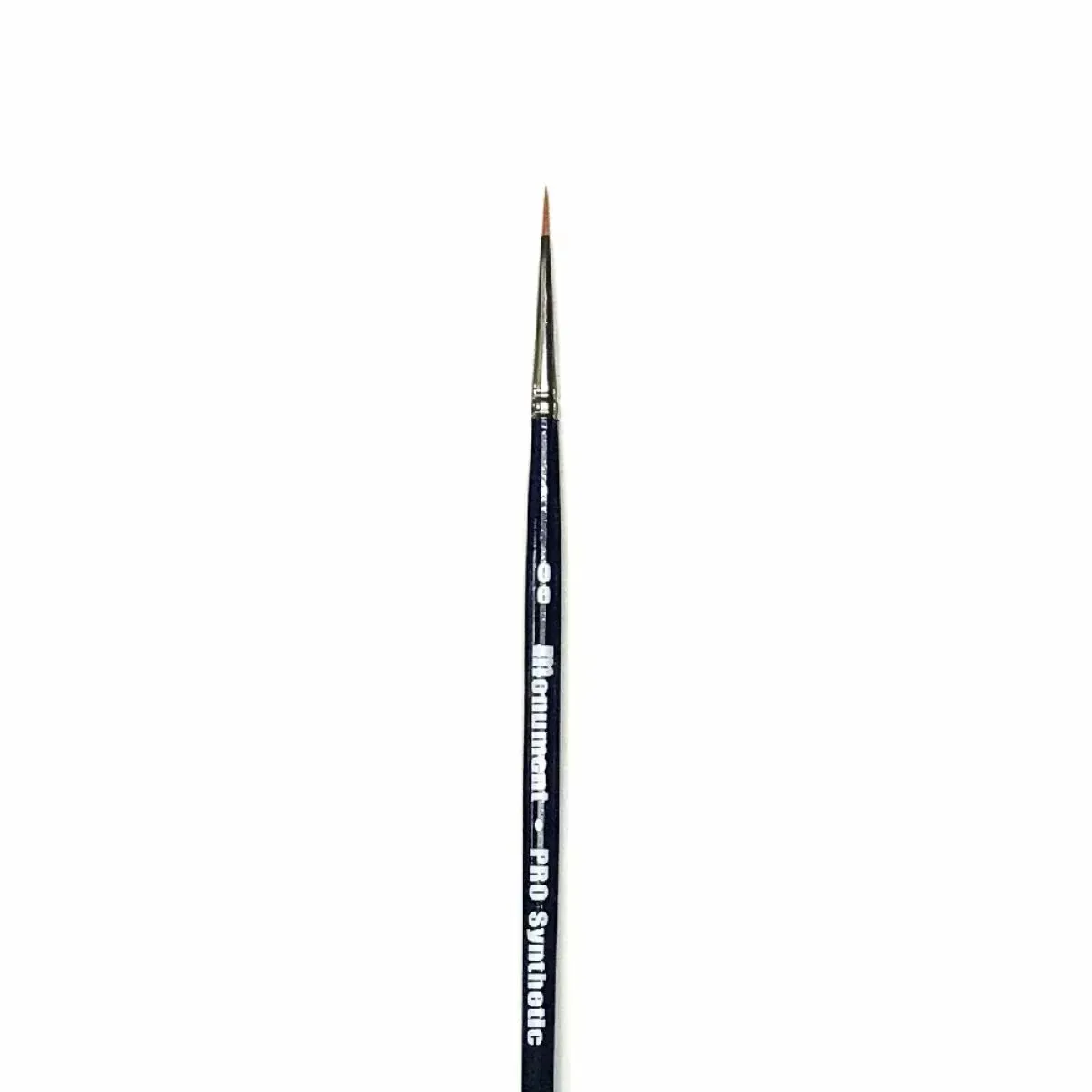 Monument has reinvented the synthetic brush! Our new PRO Synthetics mimic sable perfectly, delivering more "snap" than natural hair brushes, while maintaining great paint loading and control. All the feel and handling of a natural brush in a full synthetic. Great for everything from smooth blends and edge highlights to texturing and dotting those eyes. The ultimate brush for fine detailing and finishing. Round, Size 00