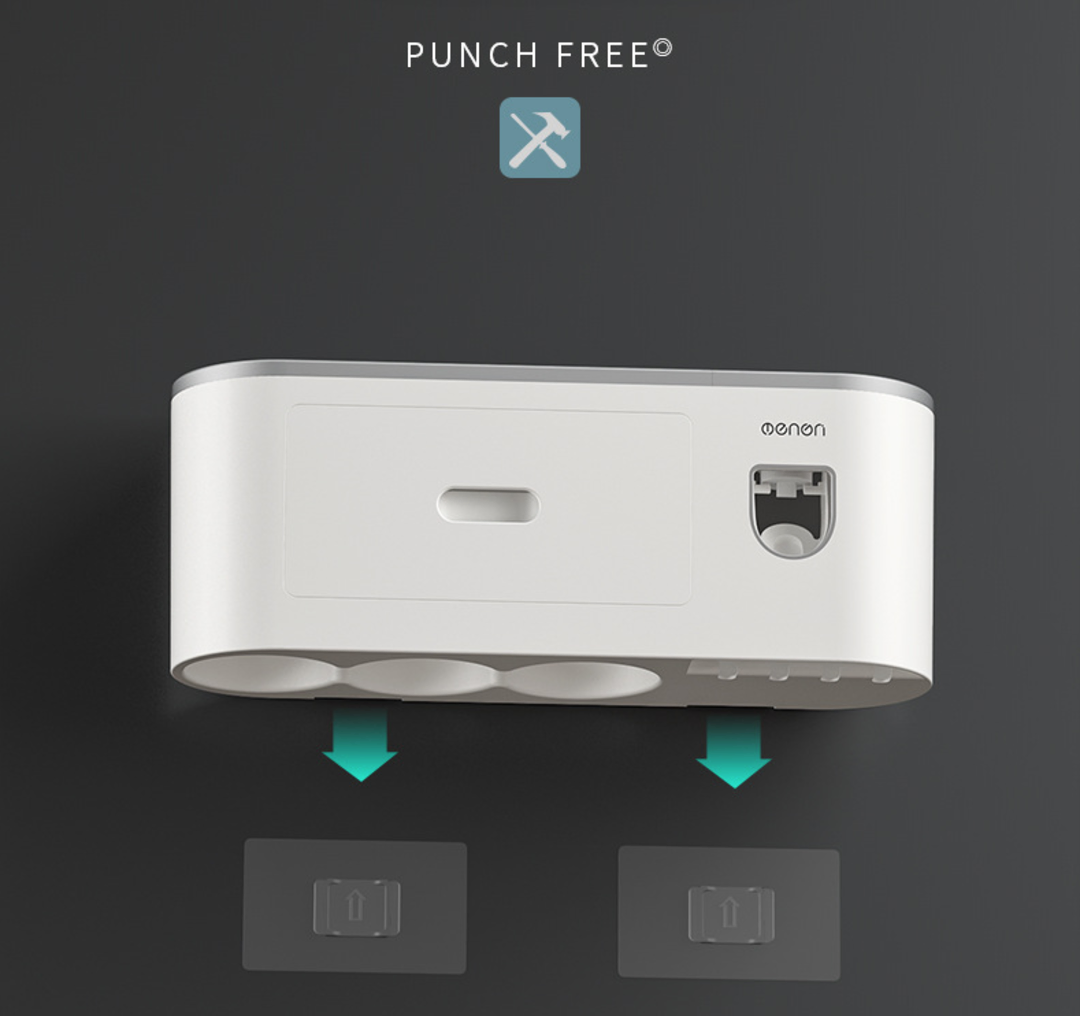 Wall-mounted toothbrush holder with 4 dust-proof toothbrush slots. It is also compatible with the electric toothbrush.