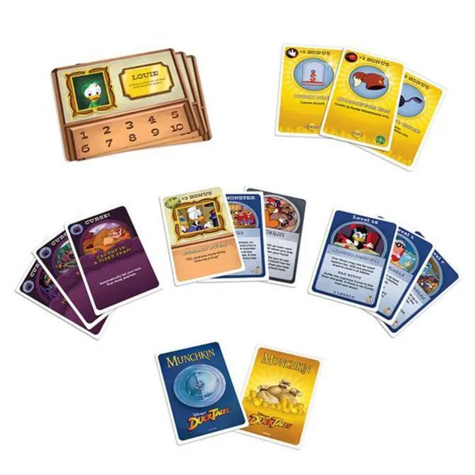 In Munchkin: Disney DuckTales, players choose from Scrooge McDuck, Huey, Dewey, Louie, and other DuckTales icons to battle it out against monsters (and each other) while uncovering treasure that will have you swimming in gold — just like "Unca Scrooge"!