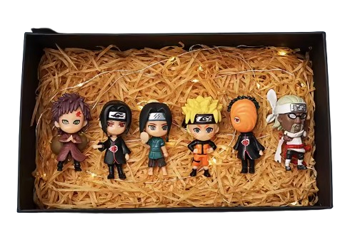 Each figure is meticulously crafted to capture the unique personalities and iconic outfits of these beloved characters from the Naruto series. The set comes in an elegant gift box with a straw-like bedding and string lights for a charming presentation, making it perfect for both gifting and collecting.