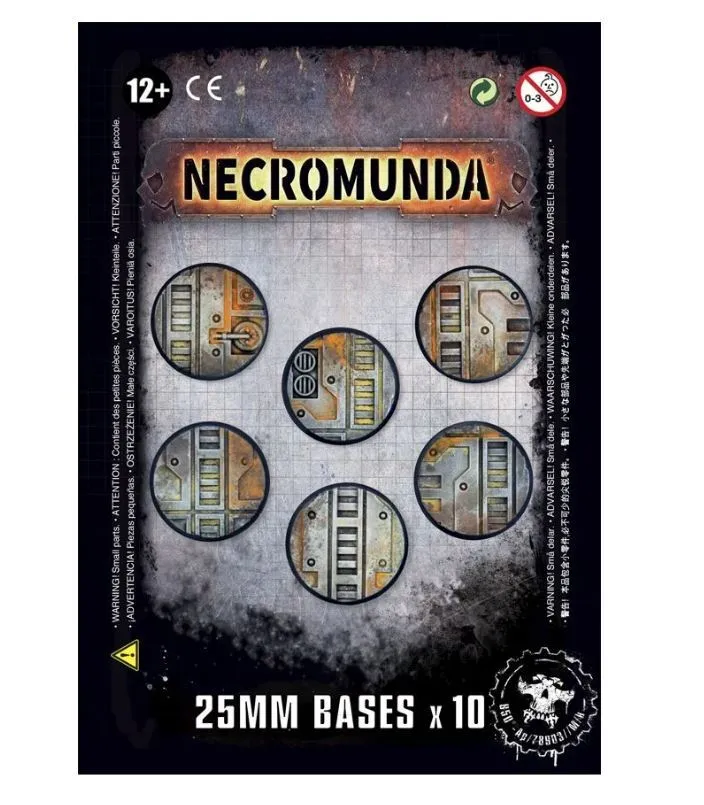 Perfect for basing your miniatures to match the grim, industrial feel of Necromunda Underhive, this is a set of 10 25mm plastic bases with sculpted details which match the floor tiles found in the game.