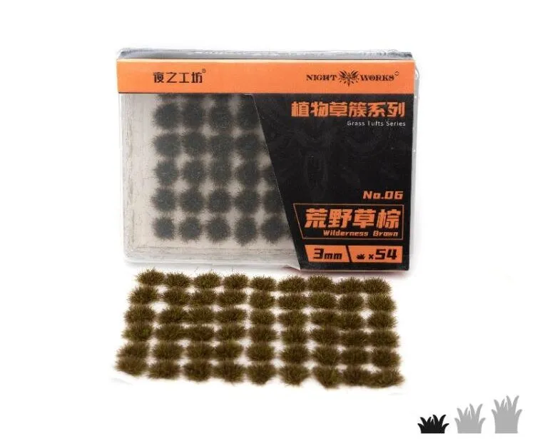 Add authentic detail to your miniature landscapes with the Night Works 6 Wilderness Brown – 3mm. Perfect for creating natural, rugged terrain, each pack includes 54 tufts of finely crafted brown grass, ideal for forests, hills, and wildlands.