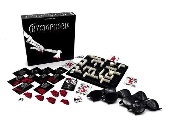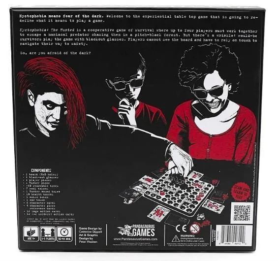 Welcome to the experiential table top game that is going to redefine what it means to play a game. Nyctophobia: The Hunted is a cooperative game of survival where up to four players must work together to escape a maniacal predator chasing them in a pitch-black forest. But there’s a wrinkle: would-be survivors play the game with blackout glasses. Players cannot see the board and have to rely on touch to navigate their way to safety. So, are you afraid of the dark?