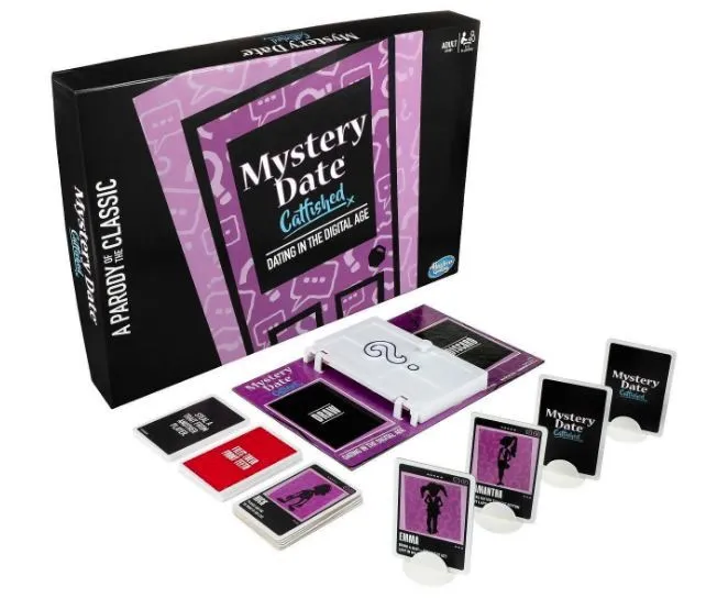 It's an adult party version of the classic Mystery Date board game that many people remember from their childhood. This Mystery Date Catfished board game brings you into dating in the digital age. By picking, swapping, and collecting the hilarious Trait cards and Action cards, you'll wade through a sea of weirdos as you search for love in the dubious world of online dating. Once it's time to open the door on the gameboard, prepare to meet the companion of your dreams and your dating scenario. But watch out! You just might get catfished instead!