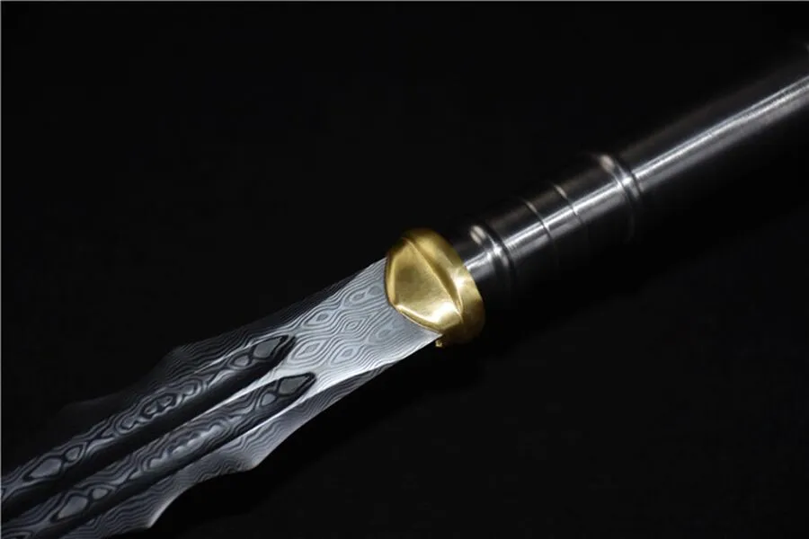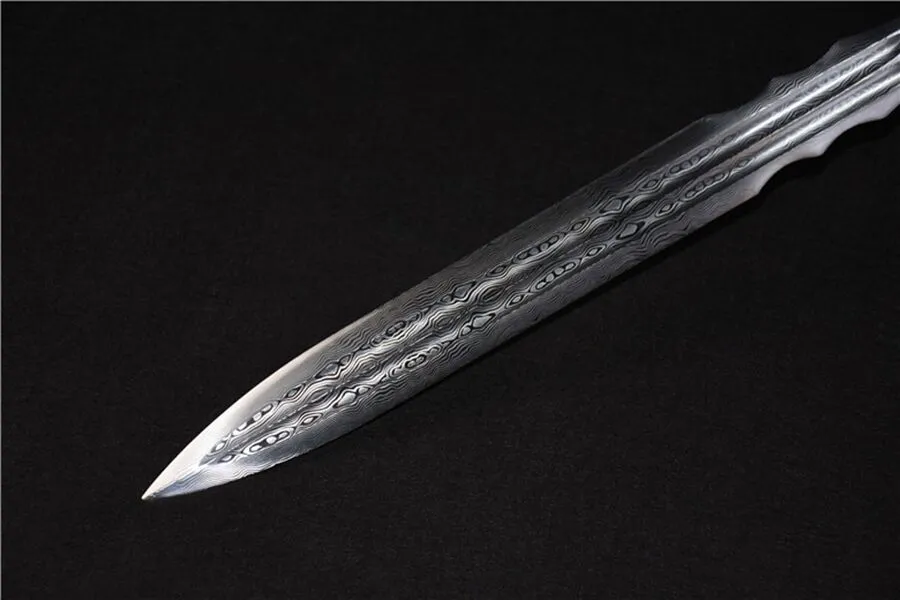 The Patterned Roc Spear features a sleek and intricate design, with a balanced structure for optimal handling. Its high-manganese steel blade and polished stainless steel handle make it a durable and striking piece, perfect for enthusiasts of traditional weaponry or martial arts.