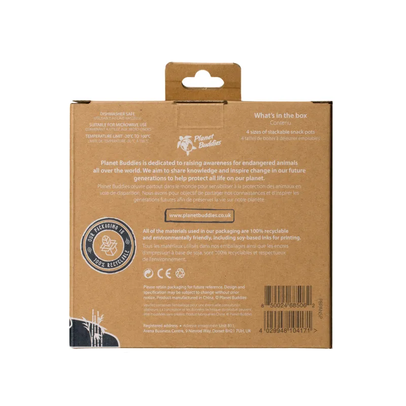 These 4 in 1 stackable snack pots are perfect for snacks, fruits, vegetables and treats on the go. Our panda pots come with lids and are a great space saver, as they store inside each other.