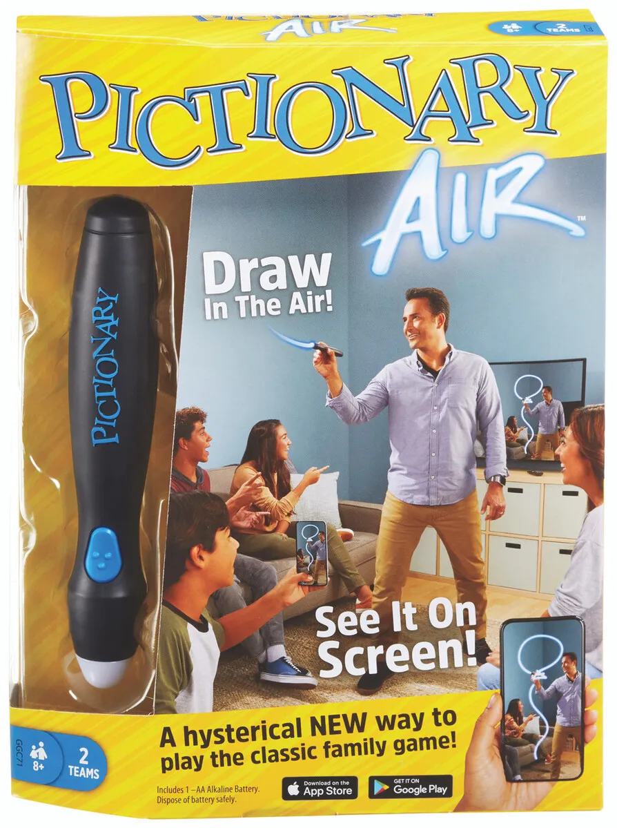 Introducing Pictionary Air, a hysterical way to play the classic family drawing game! Draw in the air, see it on screen in this exciting twist on the quick-draw classic. Download the Pictionary Air app to your smart phone or tablet to get started. Point the in-app camera at the illustrator and they'll appear, along with their sketch, on the screen of your smart device.