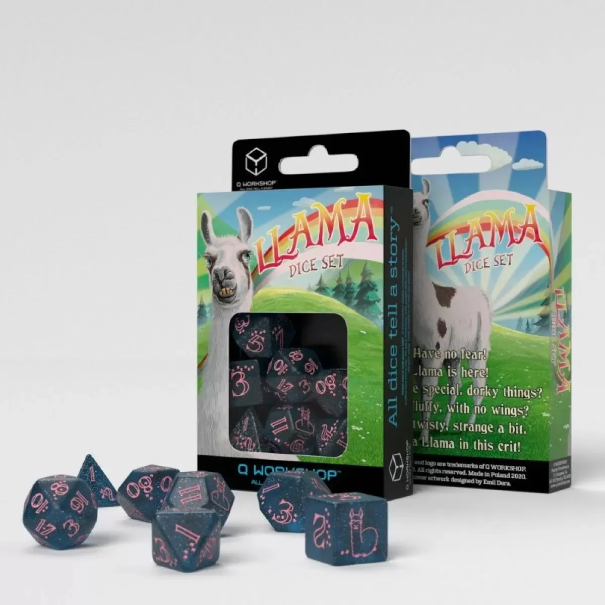 Q Workshop Llama Glittering Dark Blue And Pink Dice Set 7