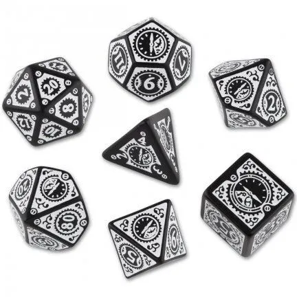 Q Workshop Steampunk Black & White Clockwork Dice Set 7