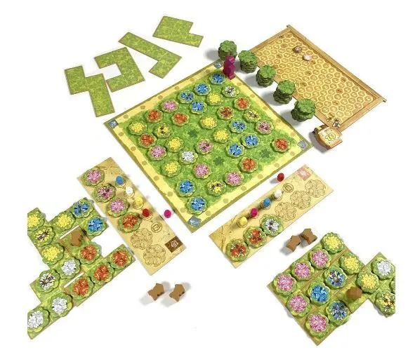 Players are beekeepers, trying to bloom their fields in order to attract bees and to produce the most valuable honey of the country.