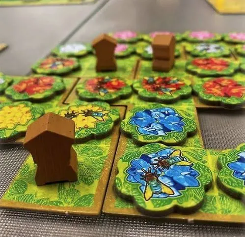 - Select 1 field from the pool (expanding your own field) and fill the field with flower tokens in your stock and your hive token.