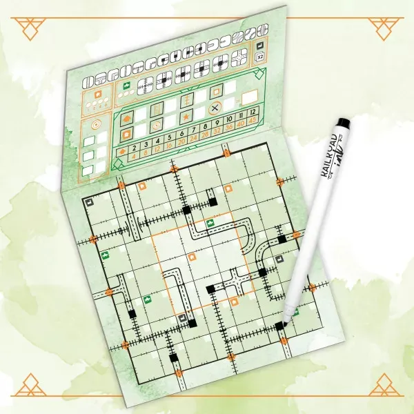 Railroad Ink Challenge is a quick-playing roll-and-write game for 1 to 4 players. Grab a board and a dry-erase marker, and get ready to reach networking nirvana! Roll the dice and draw the routes to connect the exits around your board. Expand your network with railways, highways and stations to collect points, but you will be penalized for any open connections, so plan carefully!