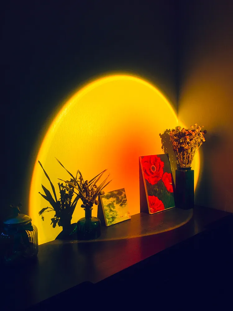 Escape the funk of being stuck indoors and bring the outdoors and sunshine into any space with this sunset projection lamp. This is exactly what you need to bring a little light into your life and into your space.