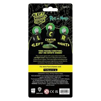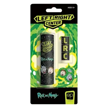 A long-time family and party favorite, Left Right Center (LRC) is an easy-to-learn dice game anyone can play and win! Roll the dice, move the tokens. The last player with tokens takes home the prize! In this edition, play with Rick and Morty-themed dice, tokens, and travel-friendly tube, making this game a sure bet for fun at your next gathering.