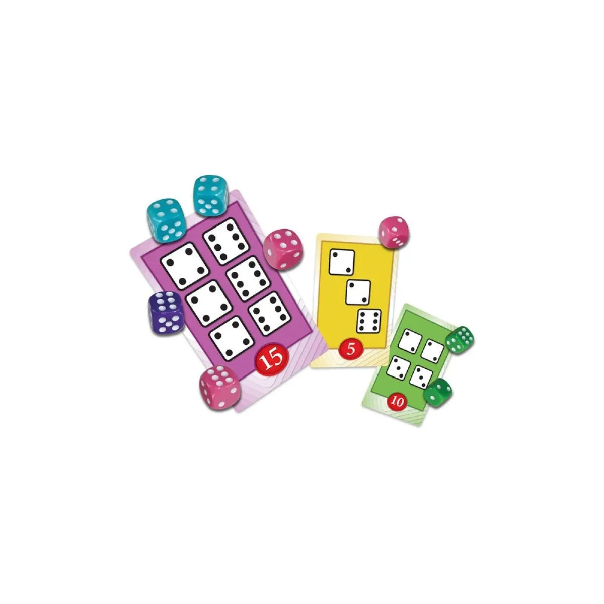 Roll For It! Going BIG! Purple Edition is everything you love about Roll For It!, but BIGGER! It’s fun, it’s easy, it’s fast…and it’s HUGE!? The cards are jumbo, the dice are chunky, and there’s a dice cup! The rules are still as simple as ever: Roll your dice, match a card, and score some points! Be careful, though—other players may challenge you for the card you’re after. The first player to collect 40 points wins! Play up to four people with either the red or purple box, or combine the two to entertain up to eight players.