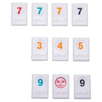 Contents: 106 Tiles (8 Sets of Tiles 1-3 in 4 colours and 2 Jokers). 4 Racks (and holders), Detailed Rules.