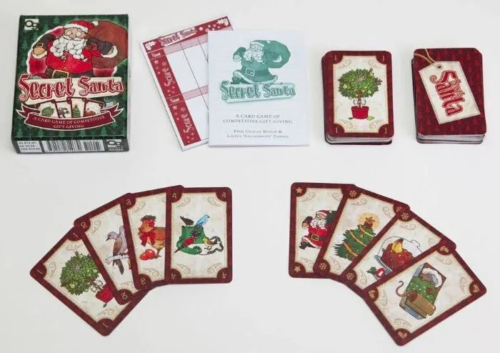 At Christmas, it's important to remember that it's better to give gifts than to receive them — but what's better than that is to be the best. Secret Santa is a festive card game of proving to friends and family that you're a better person than they are. Be the first to give away every gift you've got to win the round. Some gifts trump others but good presents are rare, and a big stack of stuff is always exciting. Mix things up with Santa's Elves and Christmas Carol, give away all of your Gold Rings, and try not to get stuck with the Fruitcake.