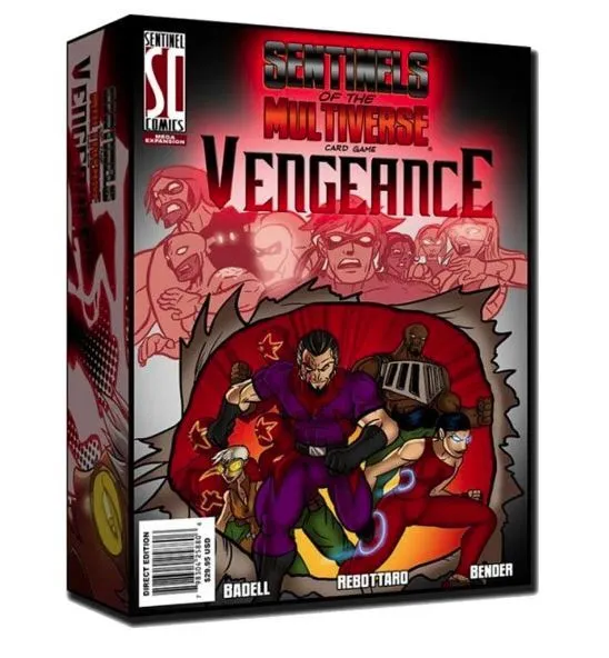 Vengeance is a mega expansion, which comes with a complete team of 5 heroes. It also features two very exciting environments. But the truly exciting part of Vengeance is the villain team: The Vengeful Five! Baron Blade has collected an impressive array of villains to take down the Freedom Five, but the primary 5 are Baron Blade himself and four other figures, who may be familiar to Sentinels fans. In Vengeance, you will play a team of heroes fighting a team of villains, each with their own abilities and synergies! The effective fighting style of the heroes of the multiverse will be seen in a villain team now! With team boosting effects, supporting actions, and coordinated attacks, the Vengeful Five will take on the hero teams! And, if Baron Blade has his way, the heroes will be defeated at last! Are you ready for Vengeance? Baron Blade is.