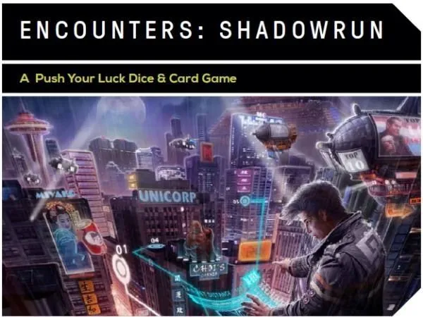 The year is 2078. The worlds’ megacorporations straddle the sprawls of the Sixth World, goliaths that intimidate even nations as they suck in souls in their drive for the almighty nuyen. Between the cracks, shadowrunners carve out a living as deniable and disposable assets that megacorps fire at each other for datasteals, personnel extractions, or even wetwork. Whether casting manabolts of magic, riding the electrons of the Matrix with just the brain, or slinging good, old-fashioned flying lead while firing at speed enhanced by the latest in bio-engineering, runners live dangerously and hope their skills are good enough to let them survive another day. Encounters: Shadowrun is a 1-8 player fast-paced, pushed-your-luck dice and card game.