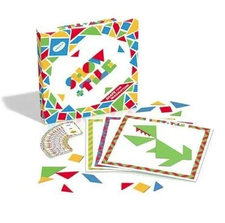 Show & Tile is a party game for 3-6 players that's suitable for all ages! Each player takes two sets of tangram tiles, picks a word, and starts building. At the end of 90 seconds, put your tiles down and try to guess everyone's words! Can't draw? No problem! Tangrams have been around for centuries, and can be used to construct anything you can imagine!