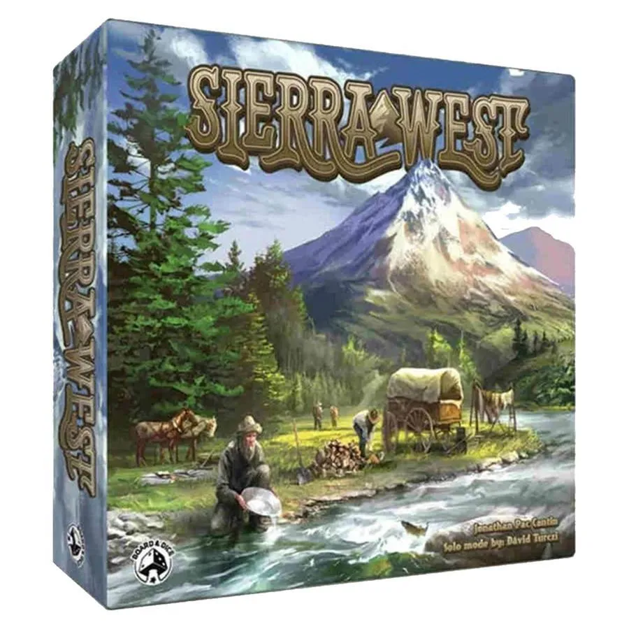 In the late 1840s, thousands of pioneers headed out West to seek wealth and opportunity. Many of these brave souls traveled by wagon over the Sierra Nevada mountain range, into what would soon become the Golden State of California. In the game Sierra West, you are an expedition leader who must guide a party of rough-and-ready pioneers—employing a clever mix of strategy and tactics with each step.