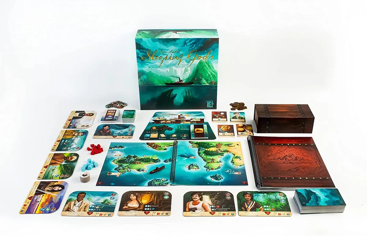 Sleeping Gods is a campaign game. Each session can last as long as you want. When you are ready to take a break, you mark your progress on a journey log sheet, making it easy to return to the same place in the game the next time you play. You can play solo or with friends throughout your campaign. It's easy to swap players in and out at will. Your goal is to find at least fourteen totems hidden throughout the world. Like reading a book, you'll complete this journey one or two hours at a time, discovering new lands, stories, and challenges along the way.