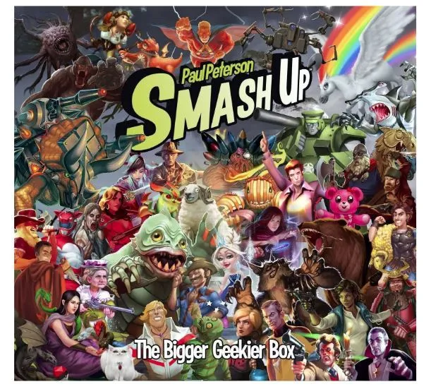 But The Big Geeky Box will eventually run out of space, especially when you sleeve all the cards. Now The Bigger Geekier Box was designed to hold even more sets than The Big Geeky Box. It has four long troughs that can hold dozens of decks each and a closeable token holder, the previously-released Geeks and Smash Up All Stars factions with their corresponding bases.